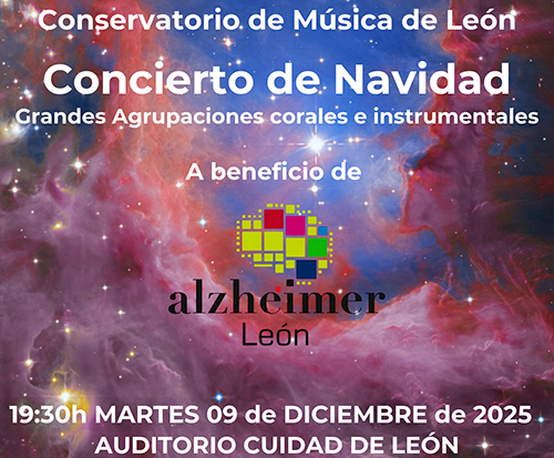 El Conservatorio Profesional de Música de León en colaboración con Alzheimer León presenta su tradicional Concierto de Navidad, un emotivo encuentro musical protagonizado por sus Grandes Agrupaciones Corales e Instrumentales. Una oportunidad única para disfrutar de la música en una cita repleta de espíritu navideño y calidad artística, interpretada por los alumnos del Conservatorio, jóvenes talentos en plena formación.