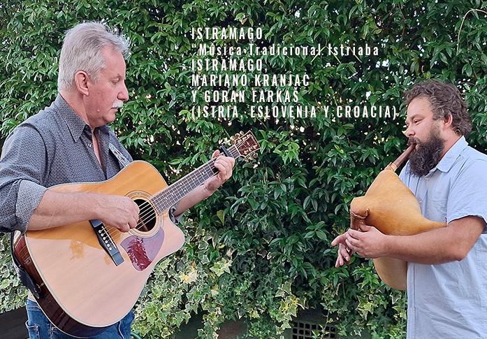 Ambos llevan años dedicados al resurgimiento de la música tradicional de Istria: Marino, casi 40 años, y Goran, más de 20. Marino ha formado parte de numerosos grupos musicales que han contribuido al resurgimiento de la música tradicional en Istria y Eslovenia, y dirige el grupo VRUJA desde 2001. Goran dirige el grupo Veja desde 2006. Ambos son investigadores y participan activamente en la pedagogía en escuelas, jardines de infancia y campamentos musicales. Marino ha publicado más de 15 álbumes con diversos grupos, ha participado en numerosos proyectos musicales, incluso con grupos internacionales, y ha recibido importantes premios por su labor. Goran y el grupo Veja han publicado dos álbumes, han actuado con músicos en el extranjero y han organizado festivales, seminarios y talleres de música tradicional y folclórica de Istria. Para esta ocasión, han preparado música tradicional de Istria interpretada tanto de forma tradicional como moderna. Se pueden escuchar diversos instrumentos tradicionales de cuerda y viento propios de Istria, y a través de las canciones, también se aprecian varios dialectos eslavos e italianos presentes en la península de Istria.