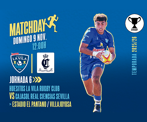 Rugby División de HonorHuesitos La Vila Rugby Club vs. Caja Sol Real Ciencias Sevilla9 noviembre 2025Estadio de Rugby El Pantano